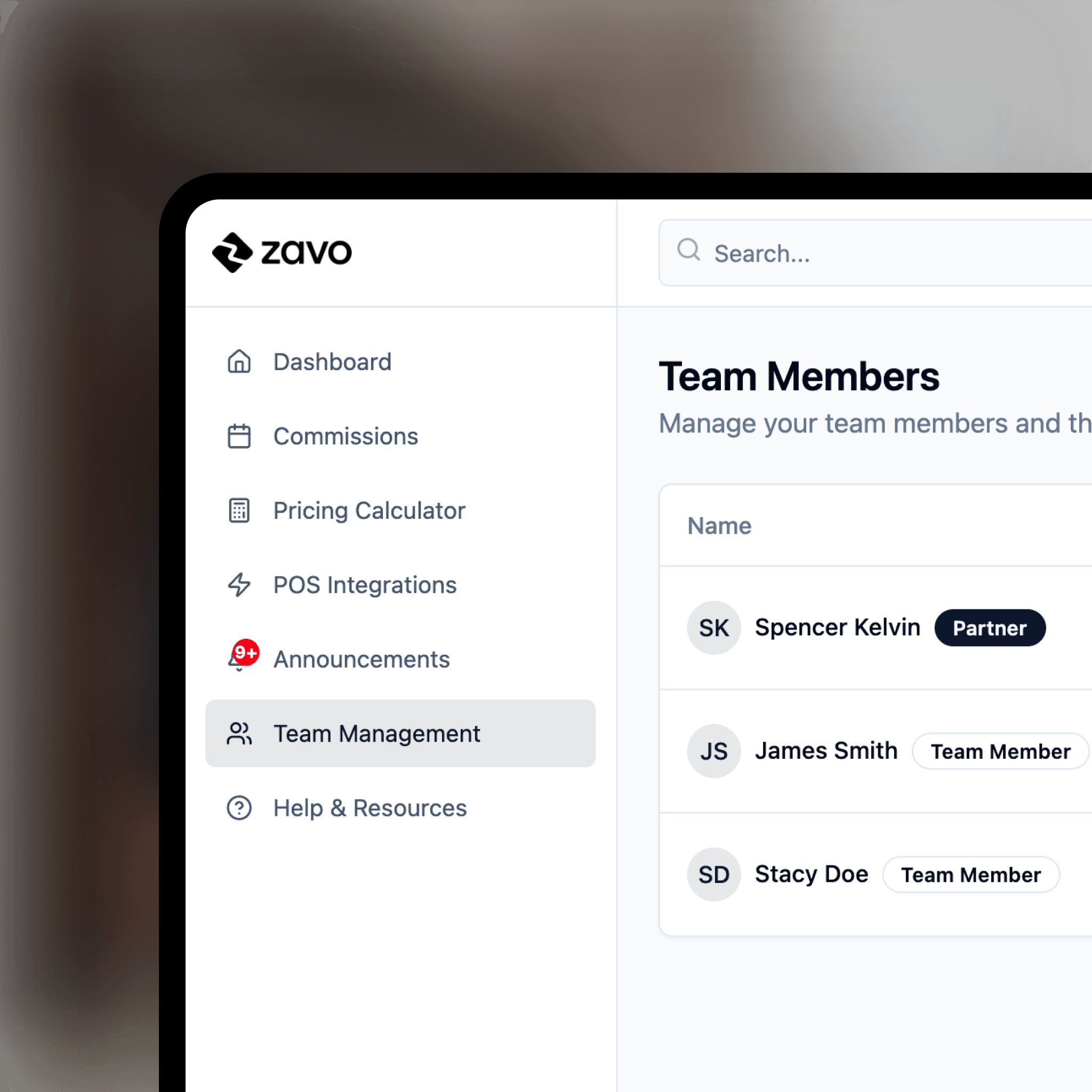 Add your team directly to the Zavo dashboard
