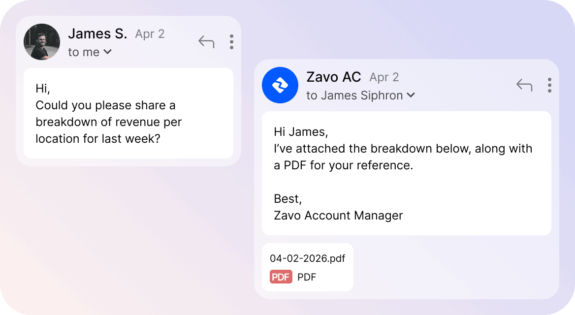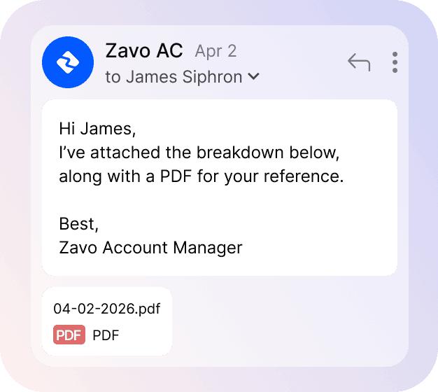 Reach your dedicated Zavo team anytime — via WhatsApp, email, or phone — with fast, consistent support across your organisation.